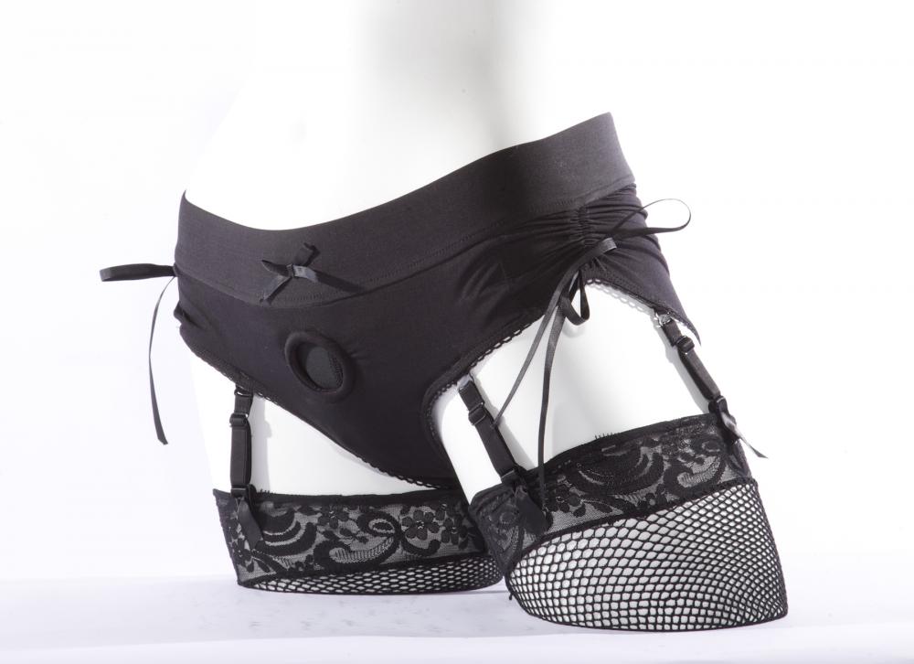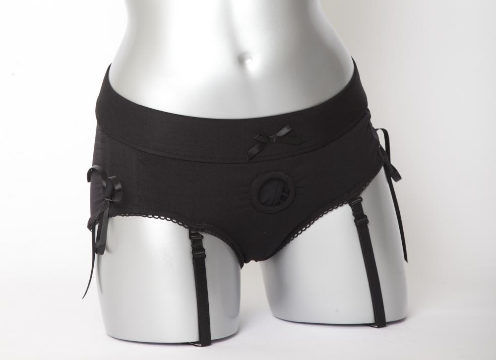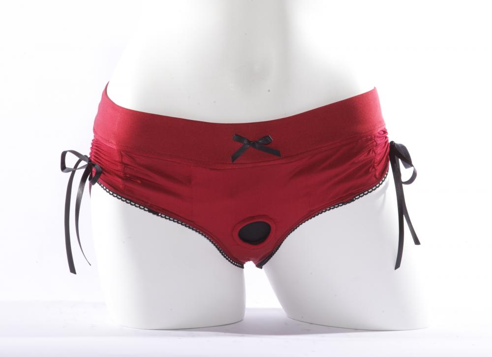 Two looks in one: a tug and twist of the ribbons transforms booty shorts into high-‐cut panties